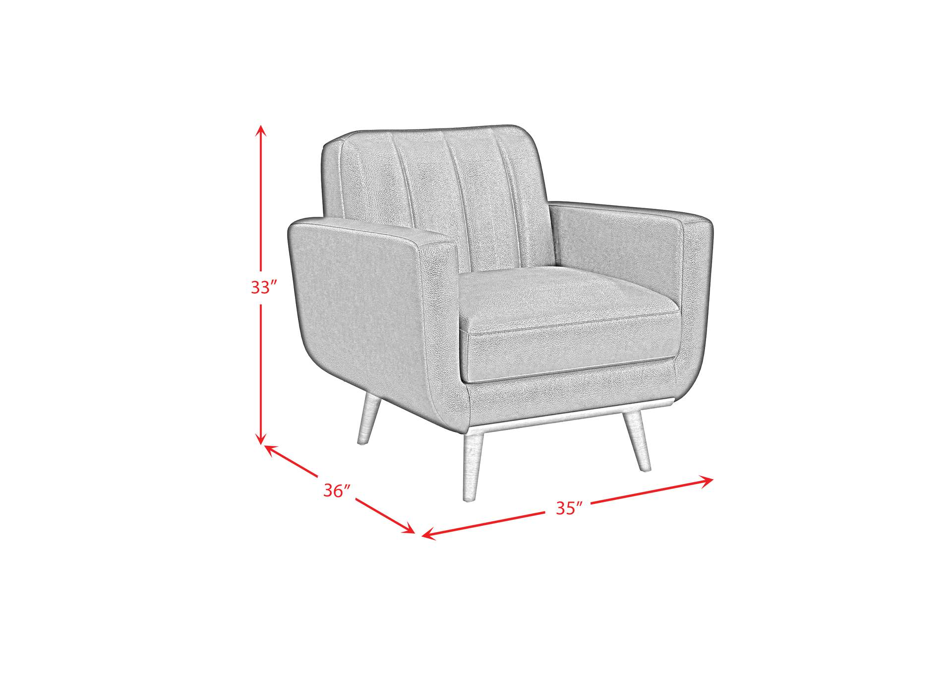 Well-Proportioned Footprint. At 35"W x 35"D x 33"H, the Horizon Chair is sized to anchor a space without overwhelming it — ideal for living rooms, reading corners, home offices, and bedroom sitting areas alike.