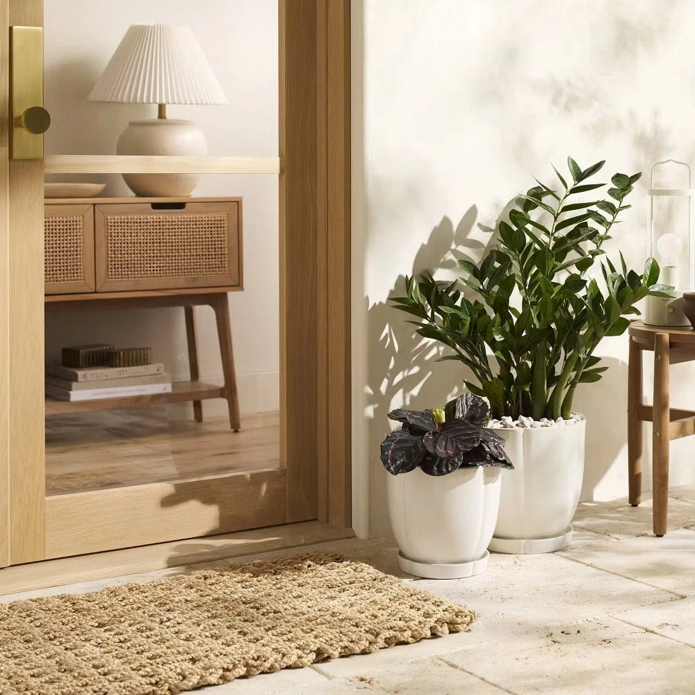 Add timeless elegance to your garden with this Stoneware Indoor/Outdoor Planter Pot with Saucer Cream from Hearth & Hand with Magnolia. Made of stoneware material, this round planter pot boasts a glossy finish for a luxe appearance. This planter pot comes with a saucer to keep your surfaces protected and features a single drainage hole to get rid of excess water. Suitable for both indoors and outdoors, you can place this weather-resistant planter pot on your patio, porch, entryway and beyond.