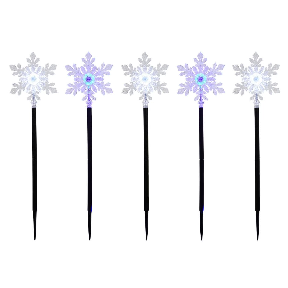 Add a burst of holiday cheer to your outdoor space with the Member's Mark 5-Count Snowflake Pathway LED Lights. These elegant 28-inch stakes feature five cool white snowflake designs with a chasing light function, creating a dazzling display for your lawn, pathway, or landscaping.