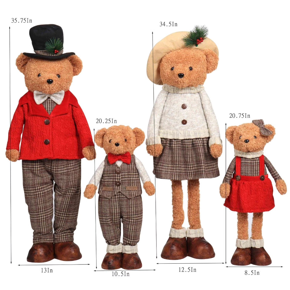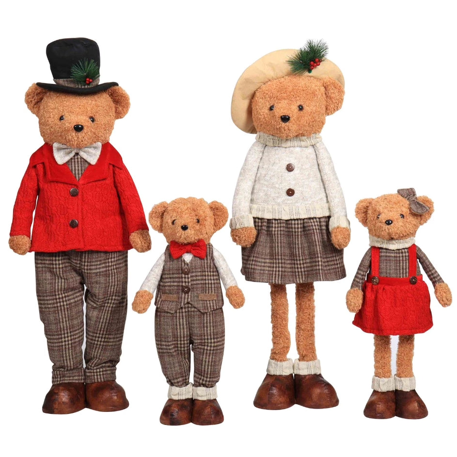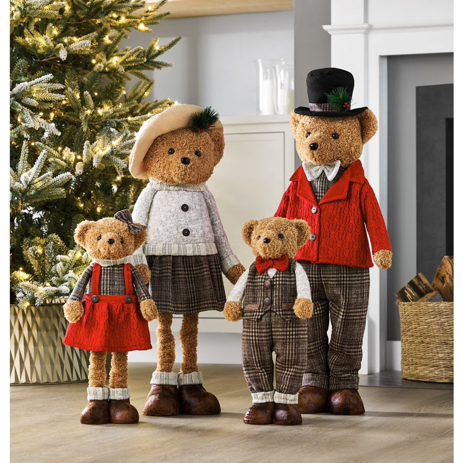 Bring a whimsical touch to your holiday decorations with the Set of 4 Plush Bear Family, exclusive to Sam’s Club. This delightful set includes four plush bears—mother, father, son, and daughter—crafted from soft, high-quality fabrics in festive holiday colors of red, ivory, gray, and brown. Each bear is dressed in stylish outfits featuring matching plaid and cable knit designs, adding a playful yet elegant charm to your seasonal décor.