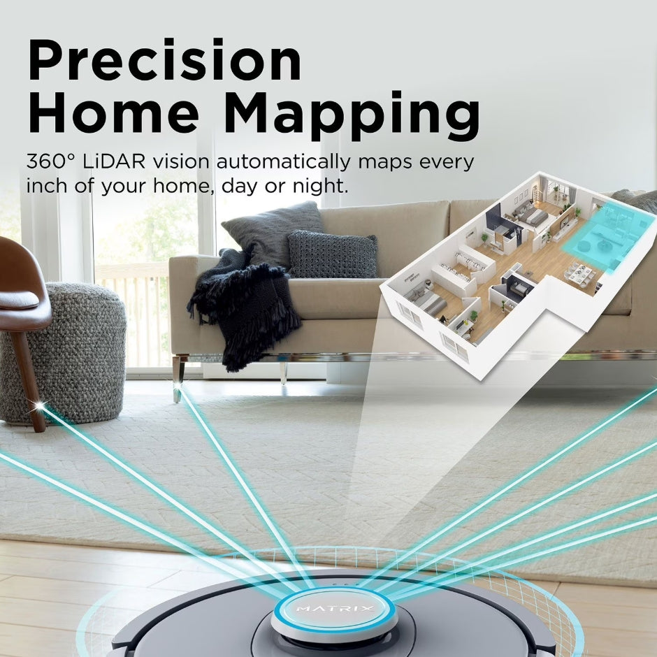 Precision Home Mapping allows the robot to use its 360 LIDAR vision to scan your home and build a detailed map for fully autonomous movement. This feature helps your robotic vacuum to detect and avoid objects in its path at any time of the day or night. It also creates a precise home map in the SharkClean® app, allowing you to select specific areas for cleaning on-demand, initiate Matrix Clean, and set cleaning schedules from anywhere.