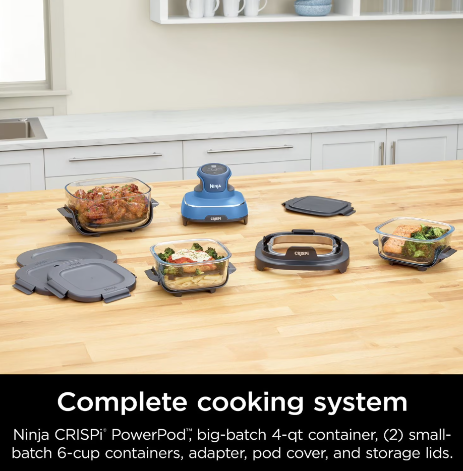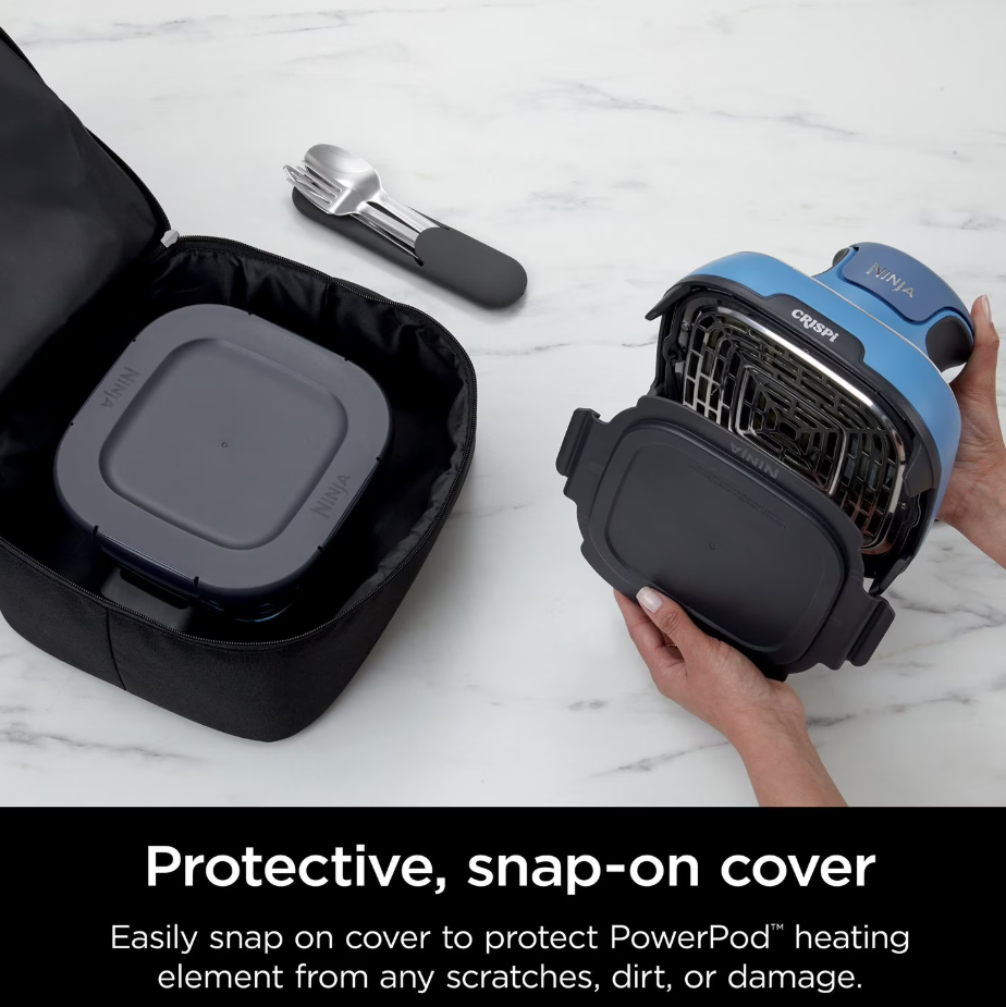 The Ninja Crispi 5-in-1 Portable Cooking System packs the power of a full-sized air fryer into a portable design. It includes two small 6-cup CleanCrisp containers and a larger 4-quart CleanCrisp container, making it versatile for various cooking needs. Whether you’re whipping up quick single-serve meals in 7 minutes, sharing crispy snacks on the go, meal prepping for the week, or serving a crowd, the Ninja Crispi makes it easy. Also included is a cover for your Crispi CleanCrisp heating element to protect your Ninja Crispi when on the go.