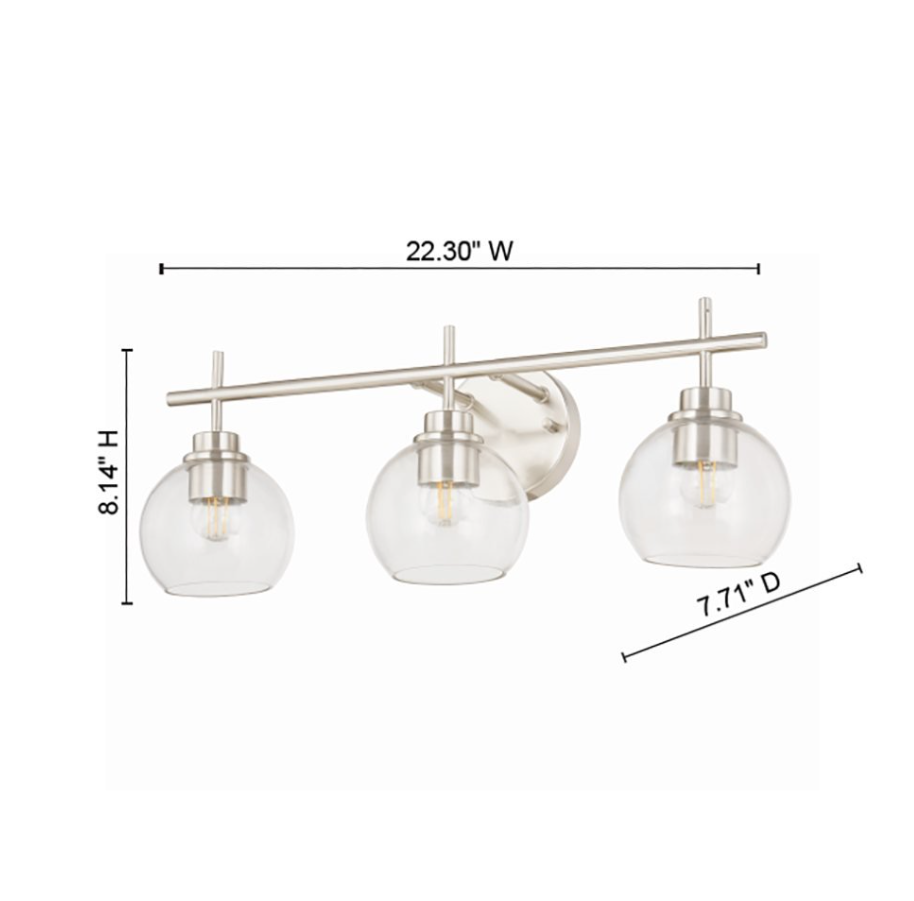 The refined simplicity of the details by Becki Owens Clear Glass 3-Light Bath Light Bar will complement nearly any bathroom decor style. The metal bar frame is attached to the round canopy and suspends three glass shades.