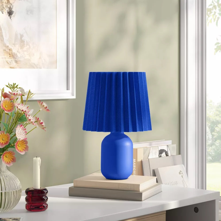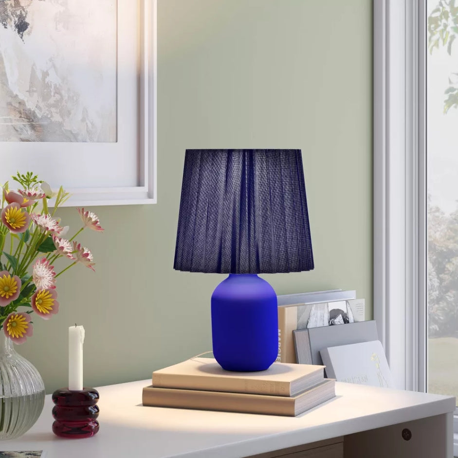 Add a touch of charm to any space with this Mini Ceramic Lamp. Featuring a ceramic body, this pink lamp has a drum-shaped shade crafted from a cotton-polyester blend. With a 5-foot cord, this lamp is designed with an inline on/off switch. You can place this on your bedside table or desk for a soft, warm glow.