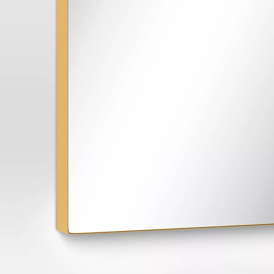 Upgrade the look of your space with this Infinity Mantle Mirror. This mantle mirror features a rectangular shape with a rounded top for a clean, modern look. Set in a rust-resistant brass frame, it adds a touch of shine to your decor. Hang it above a console table, fireplace mantel or dresser for versatile, functional and elegant display.