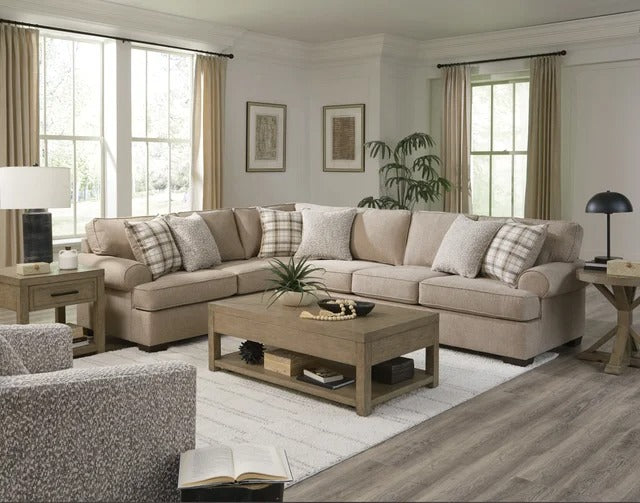Embrace warm, inviting style with the Becker Sectional in Oatmeal. This generously sized sectional offers the perfect blend of traditional appeal and plush, casual comfort, making it an ideal gathering place for your family and friends.