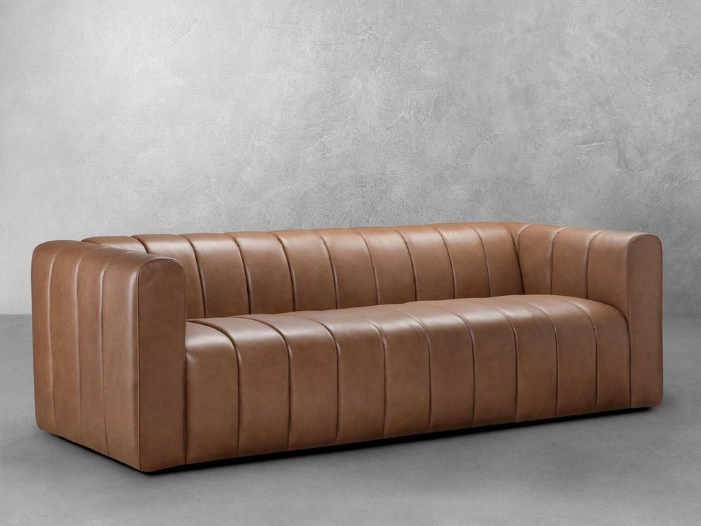 The Gianna leather sofa is both stylish and comfortable... two features that don't always go hand in hand when it comes to describing modern furniture. Featuring an oversized frame covered in 100% top grain leather with channel tufting, the Gianna chair will be the focal point of any room and is likely to become the most desirable spot in your home.