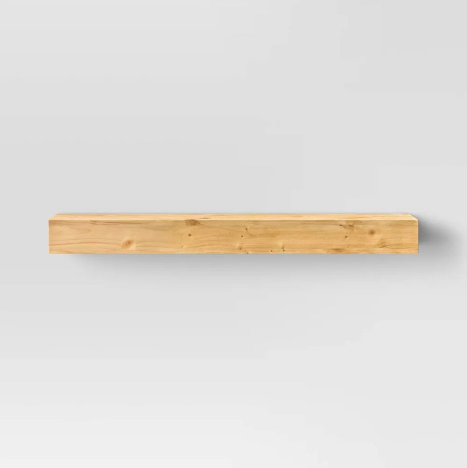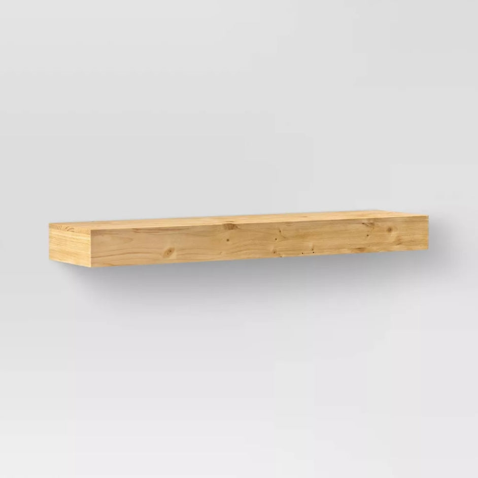Make use of your empty wall space with this 24-Inch Floating Wood Shelf. This floating wall shelf creates a space-saving storage and display surface in your space. It features a rectangular plank shape in a solid wood finish for a clean, modern look that easily integrates with a variety of decor styles. You can use this versatile piece in your living room, hallway or bedroom to display collected curios, succulents, books, framed photos and much more.